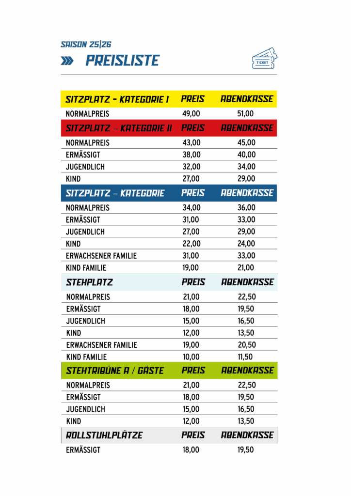 Letztes Update: Alle Heimspiele bis zum 06.01.2026 gehen am 21. Oktober 2025 in den Vorverkauf – 10 Uhr Online und ab 14 Uhr im Fanshop. Tickets für den Gästeblock werden ab sofort ausschließlich über die Fanbetreuung der Gastmannschaft erhältlich sein.