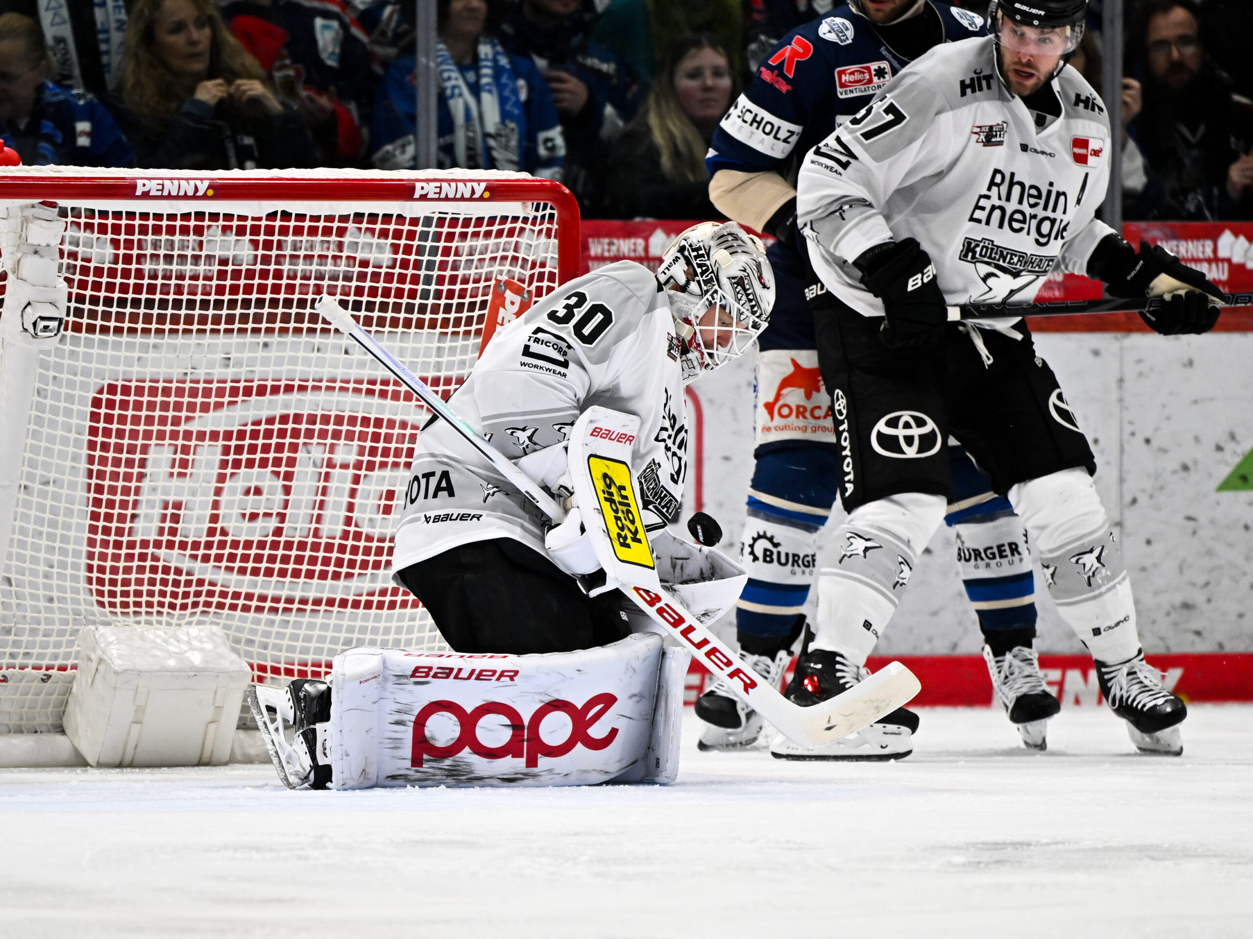 Auf der anderen Seite haben auch die Haie gezeigt, wie schwer sie zu bespielen sind. Gerade die physische Präsenz über alle drei Zonen, aber besonders vor dem eigenen Tor war beeindruckend. „Es ist hart sich gegen sie in die gefährlichen Bereiche vorzuspielen, aber das ist genau das, was wir versuchen müssen. Wir hatten genug Chancen und gerade einige gefährliche Tips vor dem Tor. Wenn wir es schaffen dort mehr zu generieren wird und das helfen. Dennoch müssen wir uns darauf einstellen, dass es auch weiterhin Spiele geben kann, in denen es keine Vielzahl an Möglichkeiten für uns geben wird“, versucht Steve Walker möglich Optimierungen zu skizzieren. Ausdrücklich gelobt hat er das Aufbauspiel seines Teams und sieht darin einen weiteren Schlüssel zum Erfolg. Wenn es gelingt den Puck und damit die Kölner zu bewegen, könnten sich daraus weitere Plays kreieren, die in schnellen Gegenangriffen münden. Deshalb sei es vielleicht gar kein Nachteil, dies auf der größeren Eisfläche der Lanxess Arena in die Tat umzusetzen.