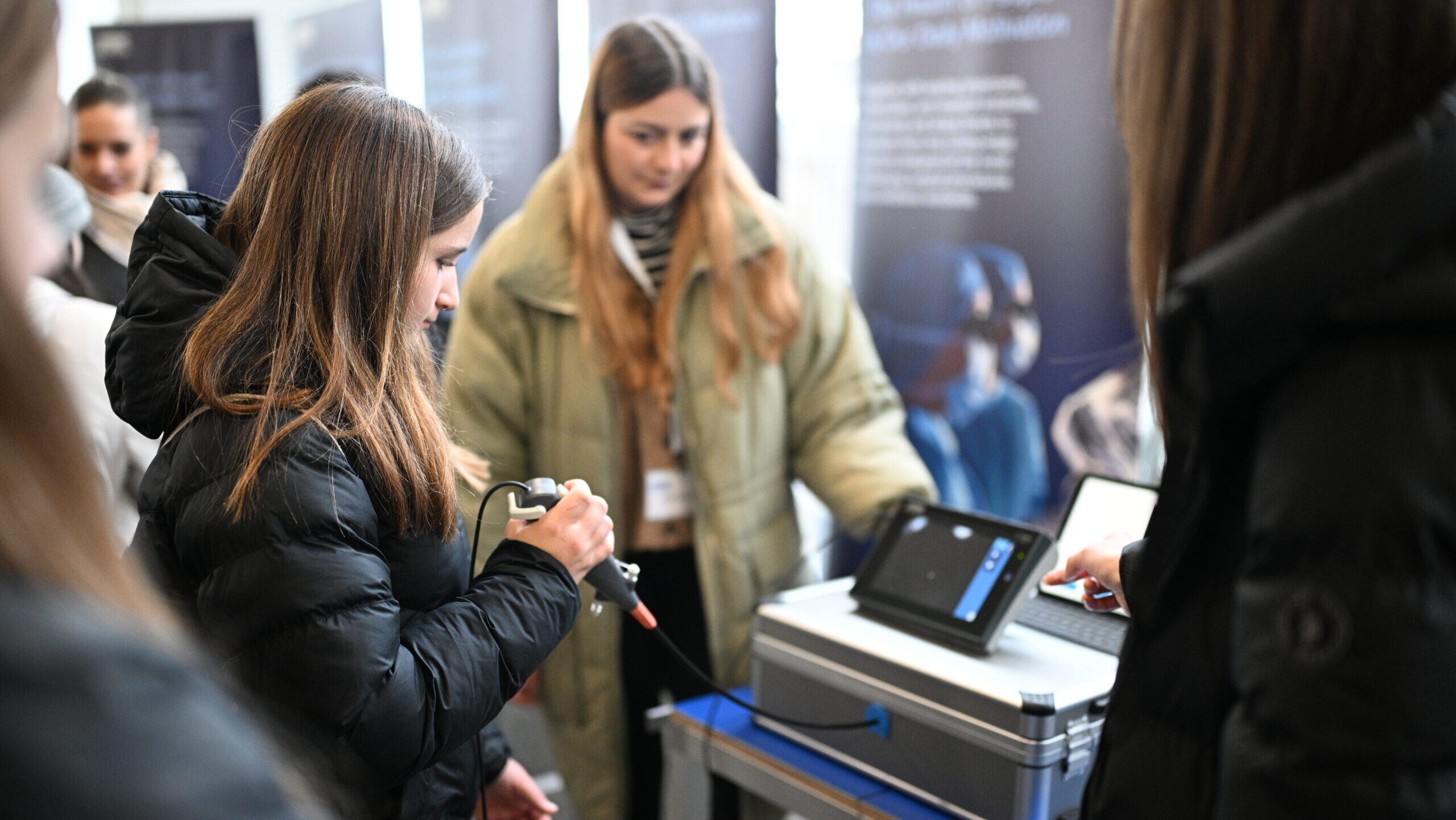 Ab 14 Uhr tauchten die Jugendlichen beim SCHOOLS DAY in einen interaktiven Medizintechnik-Parcours ein, bei dem sie selbst Hand anlegen durften: Erste „Operationsversuche“ mit Endoskopen, spannende Einblicke in Ausbildungsberufe sowie duale Studiengänge bei KARL STORZ und jede Menge Medizintechnik zum Ausprobieren sorgten für Staunen und Begeisterung. Darüber hinaus ging es aufs Eis – zumindest theoretisch: Die Schülerinnen und Schüler lernten die Ausrüstung kennen, absolvierten einen Slalom und erhielten wertvolle Tipps vom früheren Eishockeyprofi Wayne Hynes, der erneut als Mentor mit dabei war.