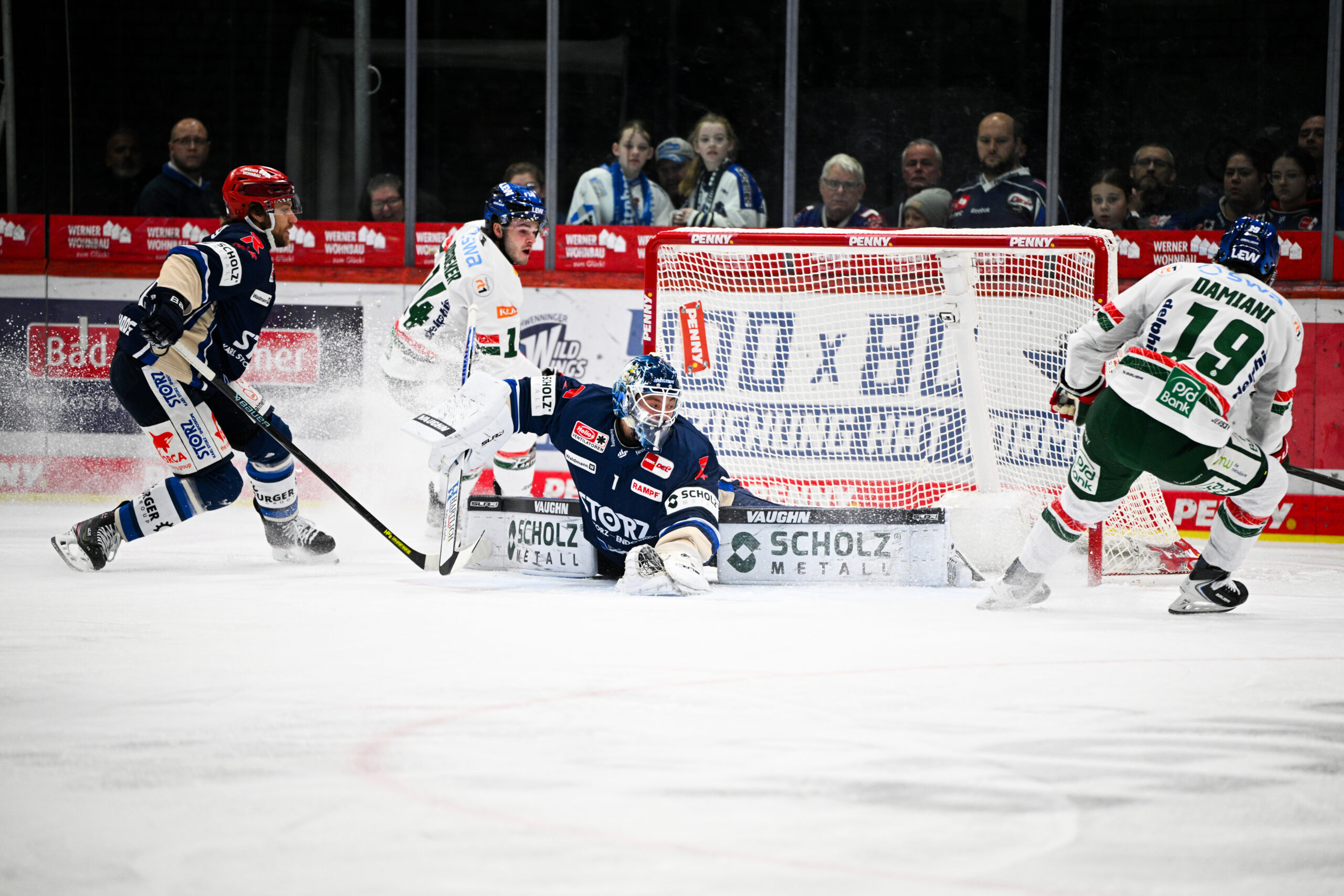 Minute 7: Riesenchance der WILD WINGS, doch Sebastian Uvira verpasst unmittelbar vor der Linie.