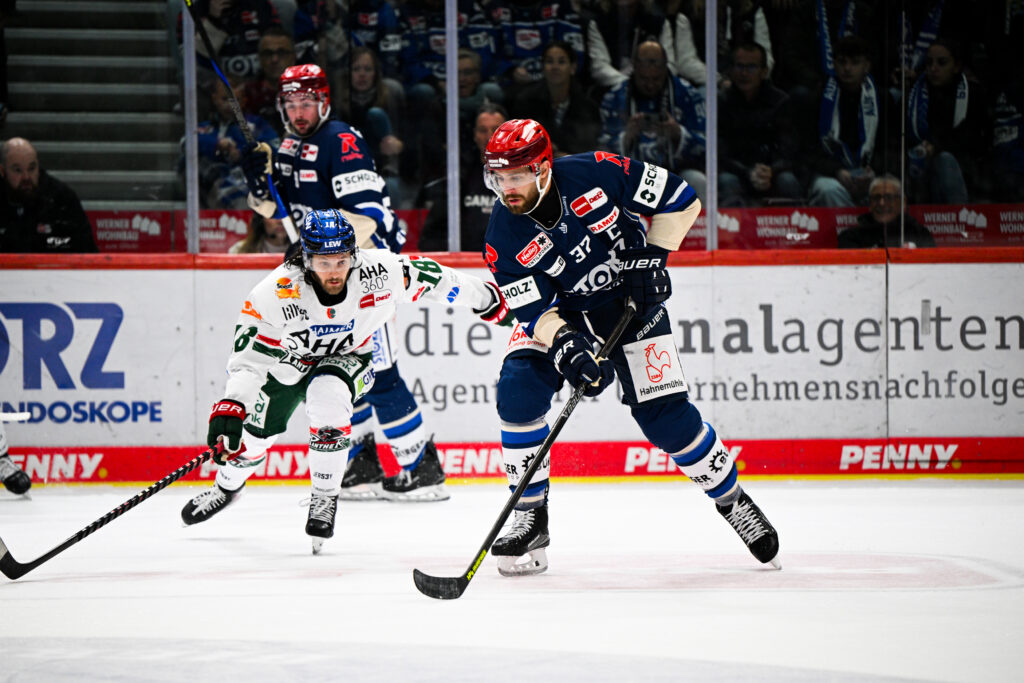 Minute 44: Danny O’Regan, der heute sein erstes Spiel in der Helios Arena absolviert, scheitert im letzten Moment an Peyton Jones. Auch Alexander Karachun kann die Scheibe im Nachgang nicht richtig kontrollieren, weshalb die gute Möglichkeit verblasst.