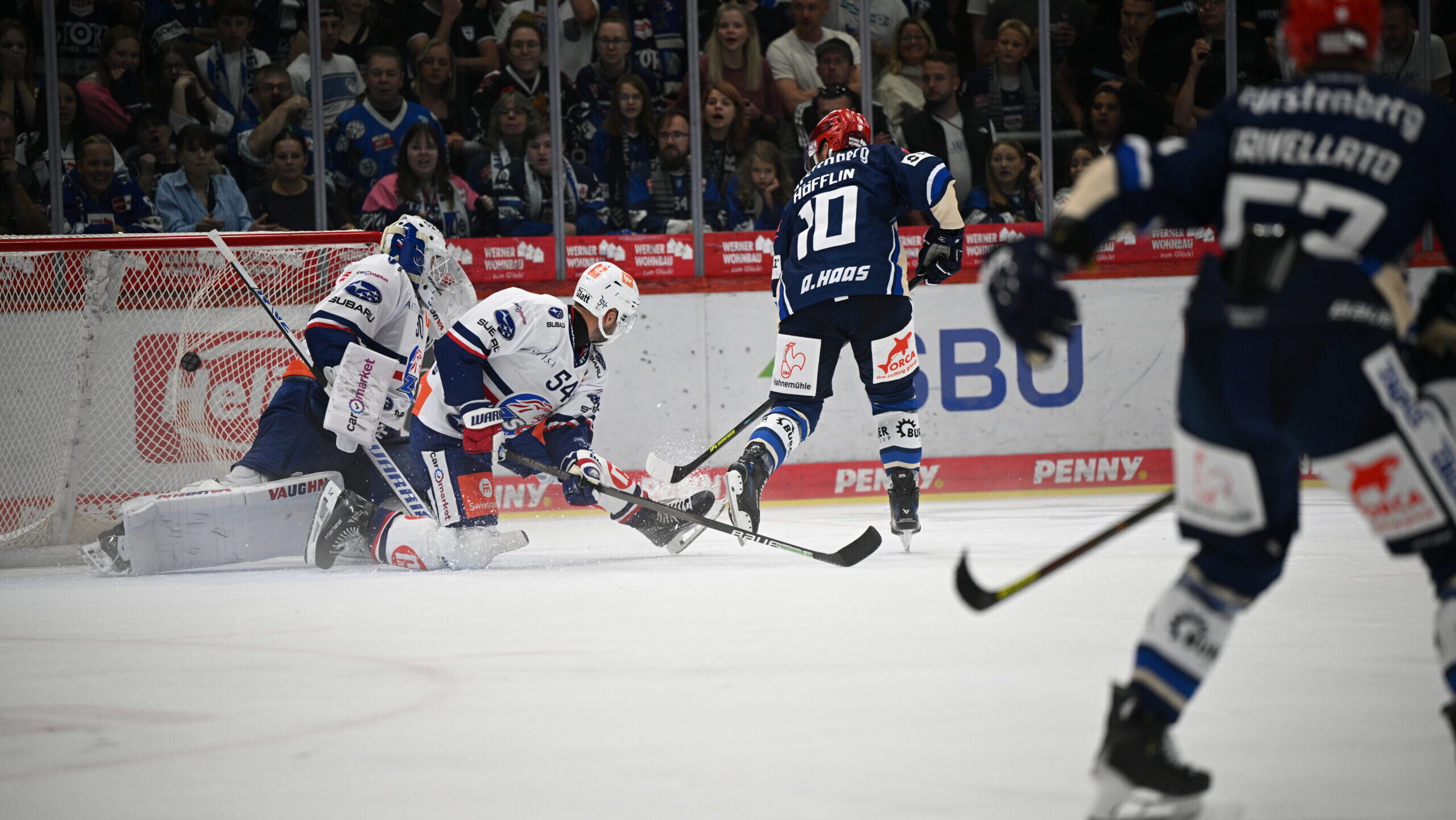 Minute 63: Boaz Bassen in der Verlängerung und in Überzahl mit einem guten Abschluss, doch Simon Hrubec bleibt stabil.